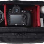 強度のある生地を使い、バッグ全体を頑丈な構造にすることで、アウトドアでの撮影でも活躍。ズームレンズを装着した一眼レフと交換レンズ2、3本、アクセサリー類を余裕を持って収納可能。
