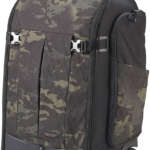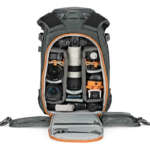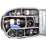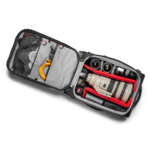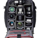 シンプルな見た目ながら機材を無駄なく収納できることで、プロの愛用者も多いモデル。メインスペースには一眼レフ2台とズームレンズ4〜6本、フロント部に15インチまでのノートPCを収納でき、側面には三脚を取り付けられる。