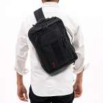 メイド・イン・USAコレクションの新シリーズがこの「デルタ」。ブラック一色でまとめ上げたソリッドなスタイルが印象的。A4サイズ対応のメイン収納部にはPCスリーブほか、2つのポケットを完備している。W35×H26×D11cm