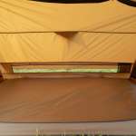 背面には横長ベンチレーターを搭載していてスカートなしなので、ここから新鮮な空気をたっぷり取り入れられ、ストーブを使っても安全に過ごせるというわけです。