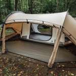 コットとファニチャーを置いても余裕があり、ソロ〜デュオキャンプにちょうどいいサイズ。フロアレスですが、別売インナーテントも用意されています。