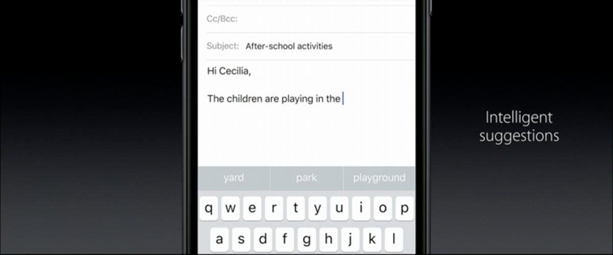 QuickTypeキーボードでは、予測変換の精度が向上。ディープラーニングによって状況や場面を考慮し、入力されている文章から次の単語を予想してくれます。