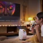 やや高めの価格ですが、オールインワン仕様で便利。角度調整が簡単なで天井などにも投影でき、大画面の非日常感が手軽に味わえます(折原さん)