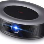 ▲円形のデザインを採用し、最大135度までの角度調整が可能。投影角度を自由に変えられるため、ロフトや傾斜のある天井などにも映像を映せる
