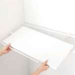 一般的な棚板の突っ張り棒はすき間があるが、これを被せることで突っ張っている範囲全体に荷物を置けるという画期的アイテム。