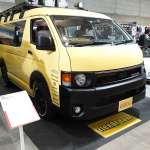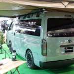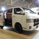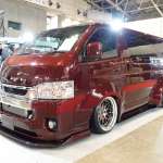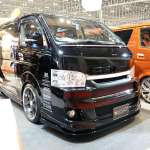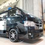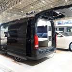 ハイエース スーパーGLをベースに、ボディをソリッドブラックにオールペン。ガラスも全交換して、ノーマルのハイエースとの差別化を図ったモデル。