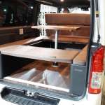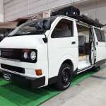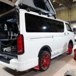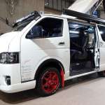 このハイエースも、車高を上げて海や山に遊びに行く時に便利に使えるようにしながら、オリジナルのリーフスプリング、ショックアブソーバー、フロントの強化スタビライザーとリアの追加スタビライザーで快適な乗り心地を実現しています。