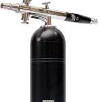 エアコンプレッサーとハンドピースが一体となったエアブラシ。USBによる充電式で、30〜40分ほど連続使用できる。塗料カップやスポイト、クリーニング用ブラシなど付属のオプションも充実しており、エアブラシ初心者が使用しても安心だ。