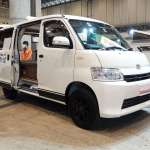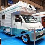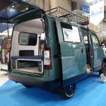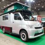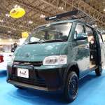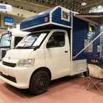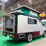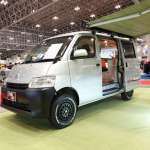 軽キャンパーを数多く手掛けるフィールドライフ初のバンコンは、ダイハツのグランマックスカーゴをベースに開発。ブラックのバンパーとリフトアップでバンならではのユルさを演出しています。