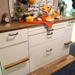 ソファの向かい側には明るい色のキャビネットを装備。キャビネットには引き出し式のテーブルが付いているので、食事はもちろんワーケーションにも対応できます。