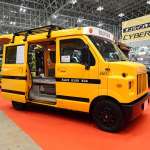 エブリイのOEMモデルである日産 NV100クリッパーバンをベースに、スクールバステイストの外観が与えられたクールライダー。フロントカウルにジープ ラングラーのようなフードラッチがつけられるなど、かわいらしさの中にもゴツさが強調された雰囲気に。