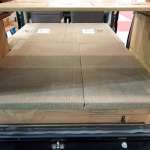 インテリアはベッドと小型のキャビネットというシンプルな作りに。でもバンライフを自分らしく楽しみたいという人は、これくらいシンプルなもののほうが使いやすいのでは。