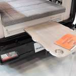居住スペースは長さ1900mm、幅1250mm。ベッド下には広い収納スペースが確保されています。右側に付けられた耐荷重テーブルには、ポータブル冷蔵庫を置くこともできます。