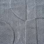 三好敷物はアートのように楽しめるラグが豊富。職人が手作業で絵を描くように柄を打ち込んだデザインで、シンプルながらもユニークな凹凸柄が印象的な1枚だ。