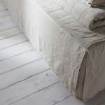 ベッド下のスペースをスッキリと見せるために、ホテルのようにベッドスカートを付けるのもオススメ。リネン素材は軽やかさも出てこれからの季節にぴったりだ。