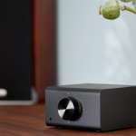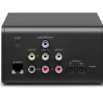 アンプやアクティブスピーカーと一緒に使うネット接続機器。Amazon MusicやApple Musicなどのストリーミングサービスを利用できる。前面にヘッドホン出力、背面に同軸RCA、サブウーファー出力など、端子類も充実している。