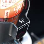ブラックメッキとカーボン調のオシャレなデザイン。両サイドの大きなアームが動き、直径80mmのさまざまドリンクが挟める。下部のボタンを押せば一瞬でリリースできる。