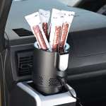 次亜塩素酸を有効成分とする付属の電解水を、本体の超音波ミスト噴霧器に注ぎ入れて使用。蒸気が噴出することで車内を消臭、除菌する。USB電源なので、車内のほか家やオフィスなどでも活躍する。噴霧モードは4種類。