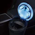 フタが閉まった状態では、側面のフルカラーLEDがカラフルに輝く。フタが開いた状態では、内部のLEDの色が自動で切り替わる。開口部が広く、吸い殻が捨てやすいのも◎。