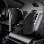 スマホをかざすとアームが自動的に閉まりホールドする。同時にワイヤレス充電もされるので、わずらわしさが一切ない。最大出力は15Wあり、効率的に充電できる。ホルダー部分は見やすい位置に調節可能。