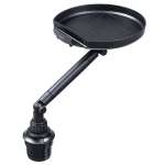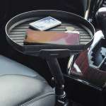 ドリンクホルダーに直径最大23.2cmの円形テーブルを取り付けられる。スマホやフードなどのちょい置きに最適。アームの長さやテーブルの角度も調節可能。