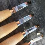 カップや皿のくぼみを作るのに欠かせないのが湾曲した刃をもつフックナイフ。モーラナイフでは大きく湾曲した刃(162)と、緩やかに弧を描くもの(163、4620円)があるので作りたい曲線にあわせて選ぼう。