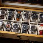 ▲スイスのビエンヌに本社を構えるオメガ。その博物館の館長とも親交が深く、コレクションを絶賛されている名畑さん。こちらはクロノグラフの「スピードマスター」を中心にしたコレクション。「シーマスター」や「レイルマスター」も自慢の逸品