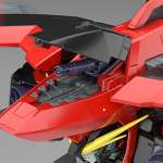 ▲MA形態時、機首のハッチを開くと機関砲が連動してせり出す仕組み。口元のビーム砲、バーニア類などに施されている細かい造形は、本物のメカのようなリアリティだ