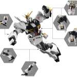▲各所のスライド機構や可動軸によって頭部や腕部を収納でき、飛行時のMA形態へと変形。MA形態では、両翼、機体下部のクロー、機首部のマシンガンなどが展開する仕組み。MA形態用のディスプレイパーツも付属。別売りのカラミティガンダムを劇中同様に載せられる