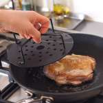 ベーコンやチキンを火にかけたら、上に置いてプレスするだけ。程よい重さですばやく焼き目を付け、溶け出した脂でカリカリに仕上がる。いつもの料理をワンランク上の味わいに。