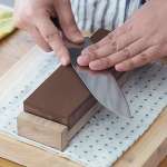 包丁のメンテナンスに欠かせない砥石。定期的に包丁を研ぐことで切れ味の良さを保ち、怪我のリスクも軽減する。平均的な目の粗さで、一般的な包丁はこの1本で対応可能だ。