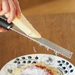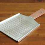 これまでのおろし金とは違い、細目の刃で繊維を断ち切るため、硬い食材も簡単に削れる。柑橘類の皮やハードチーズ、ニンニクなどに最適。飛び散りにくいので食卓でも使いやすい。