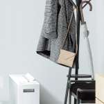 ▲一般的なクローゼットの奥行きに収まる省スペース設計。電源コードも本体背面に収納できる