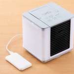 給水タンクに水を入れて使う冷風扇。気化熱現象を利用した冷却技術により、吹出口から最大-10°C(室温比)の冷たい風を放出する。脱衣所などエアコンのない場所で重宝する。また、デスクワークで自分の周りだけを冷やせば省エネに。約W19×D17.5×H20.1cm