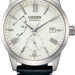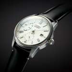 金属板に白い漆を塗り、銀箔をまぶし、さらに白い塗装を重ねる。漆の老舗「坂本乙造商店」と共同開発した「白斑柄」文字盤。工程上、同じものはひとつもない、蚕の繭のような繊細な表情が魅力の機械式モデル。パワーリザーブ表示付き。ケース裏からムーブメントも鑑賞できる。自動巻き、ケース径40.5mm、SSケース、コードバンストラップ、パワーリザーブ約40時間、10気圧防水