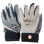 2018年、実際の試合で使用された貴重なバッティンググローブ。直筆のサインのほか、ゲーム中についた汚れも当時のまま。「引退した選手の使用グッズはこれ以上増えていかないので、かなり貴重なものになります」(岩田さん)