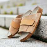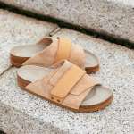 最大の特徴は、日本の着物の襟合わせに着想を得て、帯に見立てた面ファスナーのベルト。「キョウト」という名前の由来がここにあります。着物を帯で締めるようにフィット感が自由に調整できるため、スライドサンダルの弱点であるホールド感も見事にクリア。見た目だけでなく機能性も備えた良ディテールとなっています。