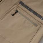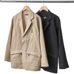 薄手ながら適度なハリ感を持つ、綿・ポリエステル素材のタイプライター生地を使用。オン・オフ問わず着用できる、上品な風合いに仕上がっている。後ろ身頃内側のバックポケットに本体を収納可能。