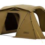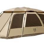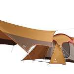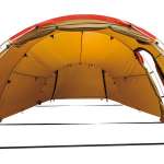 トンネル型テントに全周スカートを付けた、日本限定モデルの特別カラーバージョン。居住空間がゆったりとした作りで、前室部分を閉じれば最大6人が寝られる。両側面に跳ね上げパネルを備え、通気性や開放感も高められる。総重量約17kg
