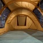 4本のフレームを使い、広々としたリビングスペースと寝室を作れる4人用モデル。トンネル形状の寝室部は、面積が約275×300cmで、高さもあって出入りしやすい。インナーには電源引き込み口も備える。総重量約16kg