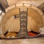 ▲アルミフレームを交差させて建てる構造で風にも強い。寝室側の高さが175cmあり、ゆったり過ごせる