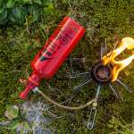 マイクロレギュレーター搭載で火力が安定し、秋の急な冷え込みでも慌てずにすむ。クッカーやウインドスクリーン、ホットサンドメーカーなど、魅力的なオプションも豊富だ。16.6×14.2×H11cm、330g