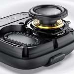 ▲48mm径ドライバーを搭載。2枚のコーンを重ね合わせたパッシブラジエーターと低域ブースト技術でパワフルな低音を再生する