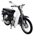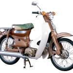 「C100」に新設計フレームを採用した、スポーツタイプのカブ。手動クラッチ式の3速ミッションで走る楽しみを強化した。