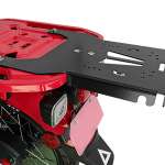 耐荷重は15kgなので、トップボックスを付けても余裕があります。ホールも多く開けられており、GIVIなど各メーカーのトップボックスの装着に対応(一部商品はアダプターが必要)。収納力アップとタンデムを両立させるワザありアイテムです。