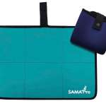 クッション性があって座り心地の良いサウナマット。洗濯機で丸洗いが可能で、ボタンでとめてスマートに持ち運べる。