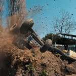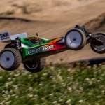自然の段差を利用した勢いのいいジャンプもオフロードRCカーの大きな魅力。「現在主流のバギーカーは、モーターが前後の車輪の間にセットされてコーナーリングスピードが上がりやすい“ミッドシップスタイル”が主流ですが、GENOVAはあえて“リアモータースタイル”にしました。ジャンプのほか、着地のしやすさも抜群。初心者でも派手な走りを満喫できます」(広坂さん)