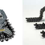 ▲スプロケットホイールとローラー8個で構成される三角形のトラックユニットは、路面に合わせてコマの組み合わせをカスタムできる
