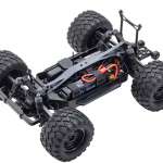 ▲シャーシは完全新設計の4WD仕様。高出力リチウムポリマーバッテリーの搭載にも対応し、ハイスピードで迫力ある走行が可能