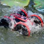 陸上と水面の両方で遊べるほか、障害物に当たって裏返ってもそのまま走行できるなど、対応力は抜群! リモコン操作によって360度旋回でき、進行方向を簡単に変えられる。
